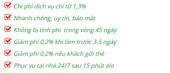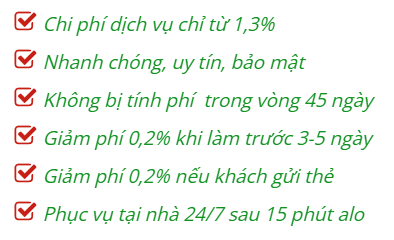 Mọi phí đều được quy định rõ ràng. Cạnh tranh từ 1.3%